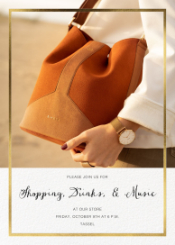 A shopping event is a great way to market your products to a targeted audience and generate sales. Whether you’re hosting a trunk show, grand opening, a sip and shop, or a sales event our invitation templates are easy to customize and send, with RSVP tracking included. From small-scale private shopping event invitations to sales event invitations for larger guest lists, Paperless Post has designs to fit every one of your needs—you even have the option to upload your own design.